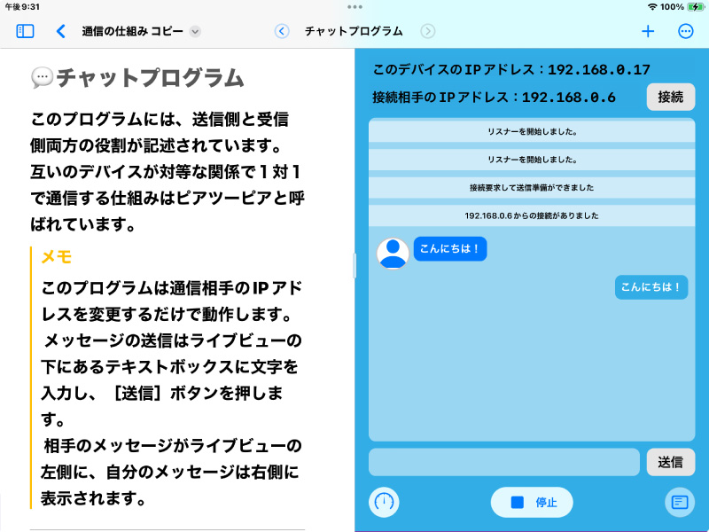 ネットワーク通信のプログラムは少し複雑な部分がありますが、学習者にとって必要最小限に絞って提供する事も可能です。そして、双方向性を持ったプログラミングでどんな事が実現できるのかを想像する事は、まさにプログラミング教育が必須になった意味でもあります。